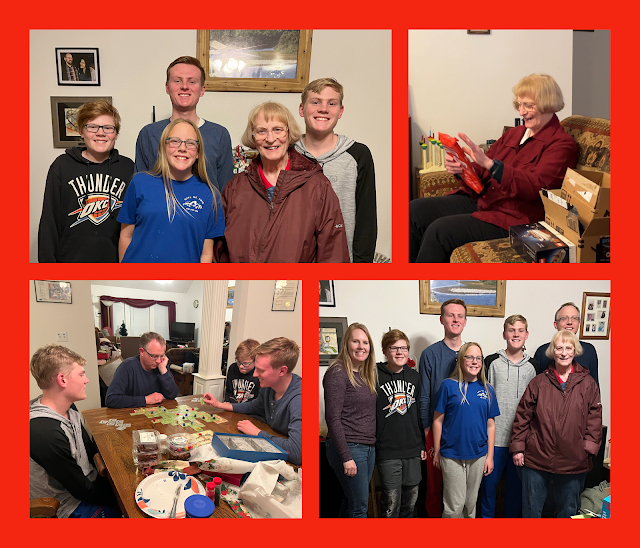 The games... I had some fun things planned, but it turns out that teenagers mostly just need food and chatting. It was a bit like herding cats to get them to do anything. We eventually did about half of the things I planned. I brought out the candy nerf gun board that we had used in a couple of other parties, but they quickly lost interest in that one. Instead of doing the candy game, they started volleying a bouncy ball around - probably could have done that for a while. They did a memory game that I made using pictures of Owen. They actually liked that one more than I thought they would, since it was fun to see the pictures of little Owen. It was pretty challenging though, because I made enough matches for 2 different sets, which each had 36 matches (meaning there were 72 cards out on each table). I had them divide into 2 teams and then race against the other team to see who could make all the matches first. They were able to help each other, but it still took some time to make progress with that many cards. They also played Pictionary and Reverse Charades for about 30 minutes.